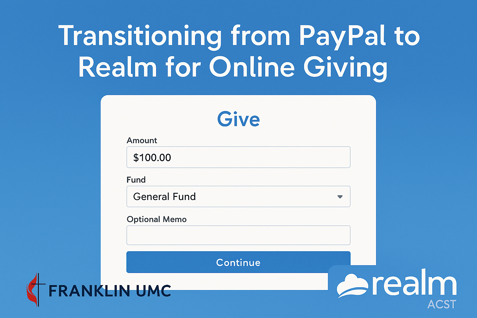 We’re always looking for ways to make generosity simpler, more secure, and more connected to the life of our church. That’s why we’re excited to share that we are transitioning from PayPal to online giving through Realm (ACST), the same system we use for our church database and accounting.